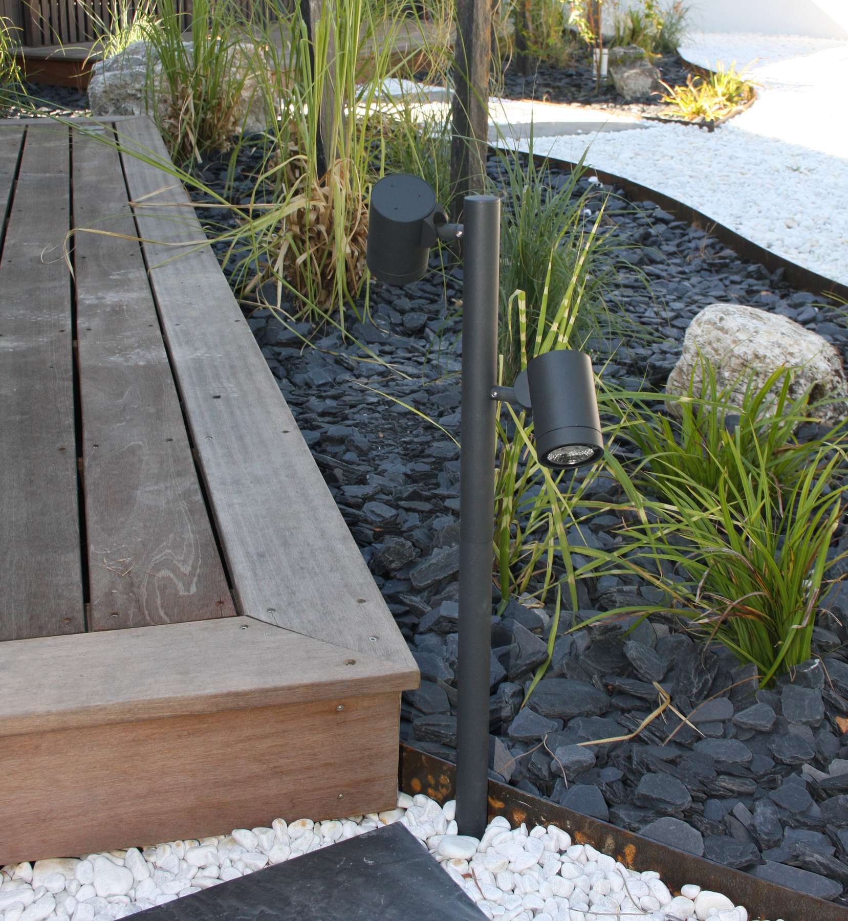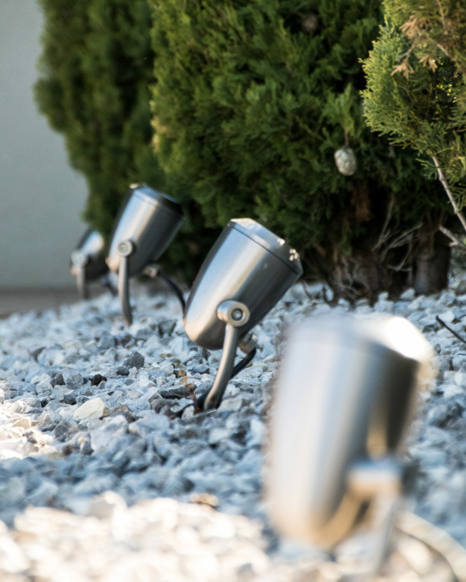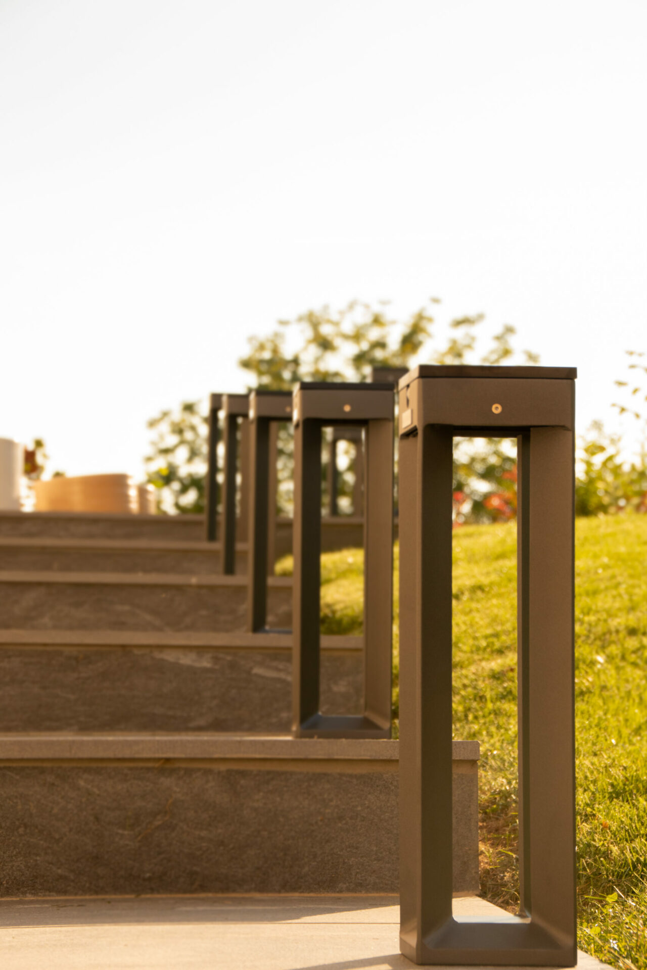 Nous travaillons aussi bien avec des installations filaires qu’avec des solutions solaires, plus respectueuses de l’environnement et économiques en énergie. Allées discrètement balisées, massifs mis en valeur, terrasses chaleureusement éclairées… chaque projet associe esthétisme, confort et écologie. »