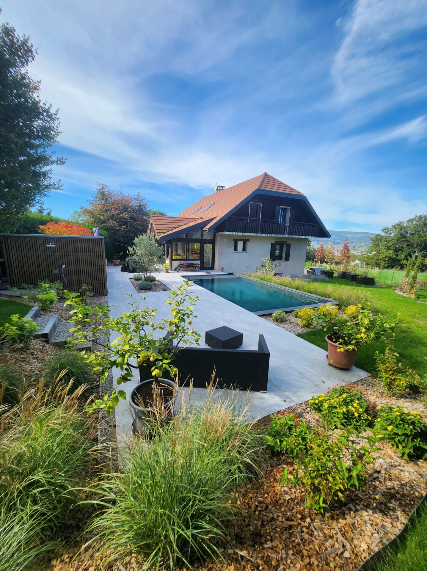 Nous donnons vie à des jardins uniques et sur mesure, adaptés au climat et aux paysages savoyards. Terrasses, piscines, jardins comestibles ou espaces bien-être : chaque projet est conçu pour allier esthétisme, confort et nature. Inspirez-vous de nos créations pour imaginer votre futur extérieur.