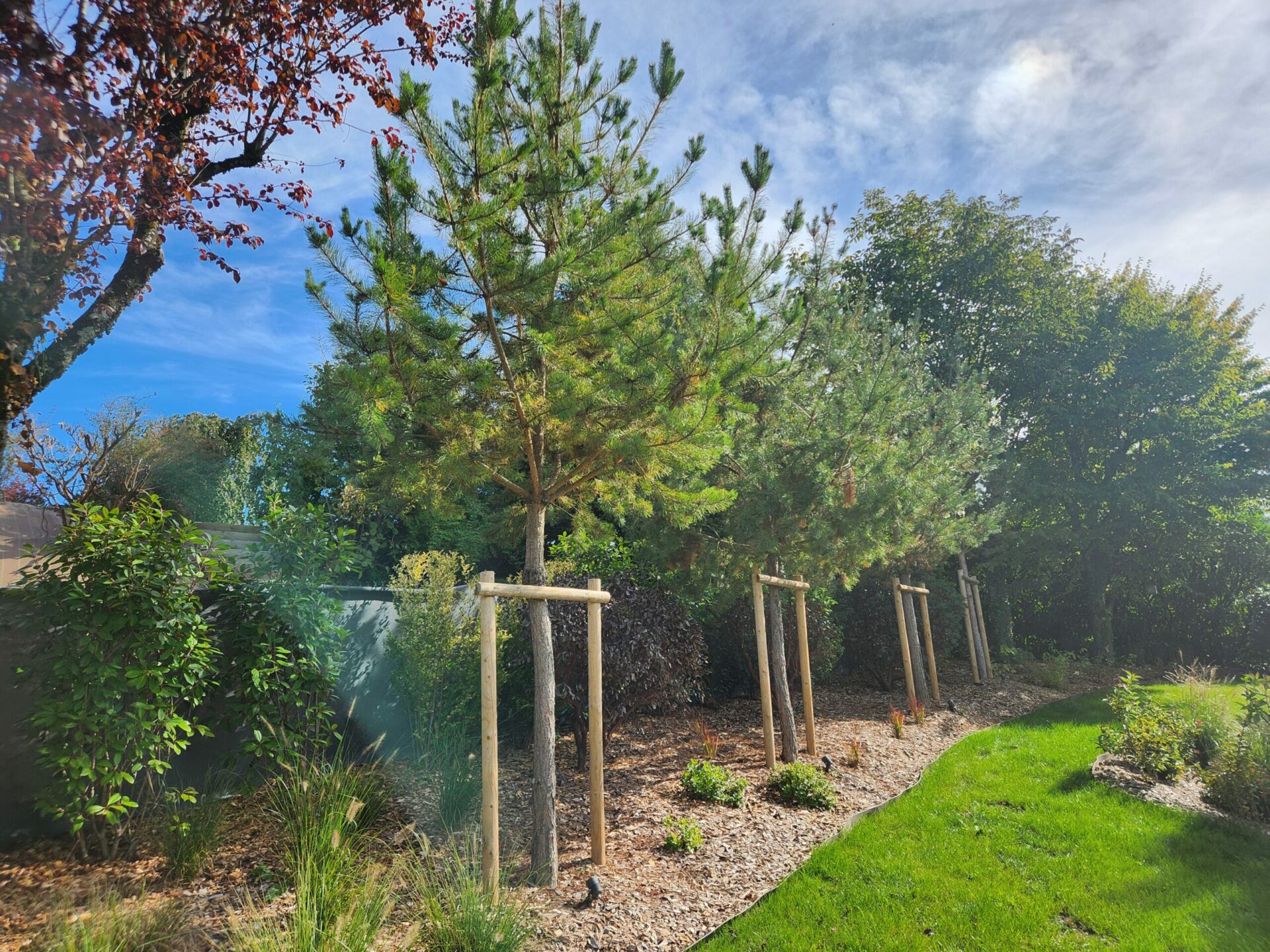 Matériaux durables et locaux : priorité aux circuits courts et aux essences adaptées, pour des créations robustes et responsables.